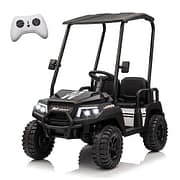 Powered by a 24V 7AH rechargeable battery and dual motors, this ride-on golf cart offers reliable performance, smooth acceleration, and long-lasting playtime. With seating for up to four riders, it’s perfect for siblings, friends, or family fun.