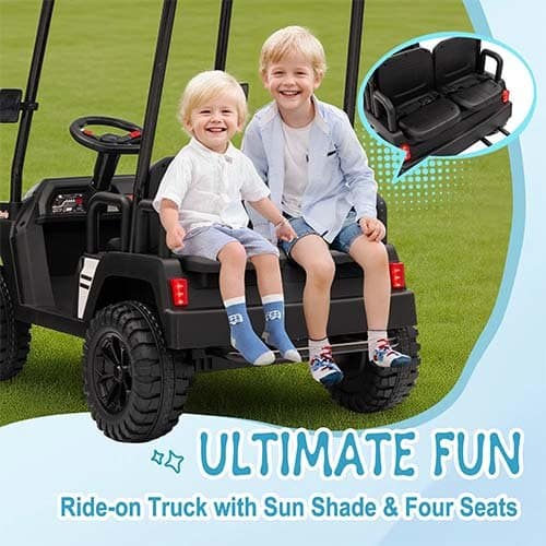 Xuanlur kids 4 Seat Golf Cart 24V w/ Remote, Awning, Music – Black
